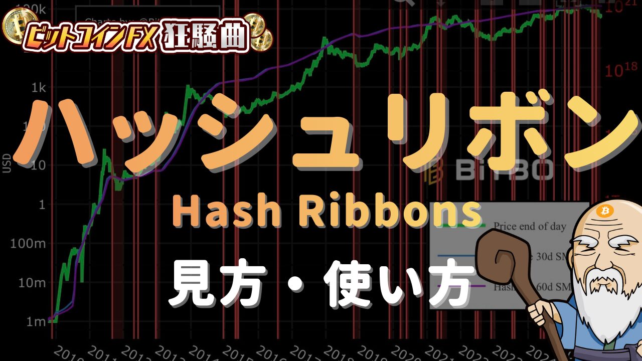 今回はビットコイン専用のトレンド系インジケーター「ハッシュリボン(Hash Ribbons)」の使い方と見方について解説します。